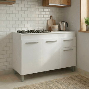 Possui uma gaveta com corrediças metálicas