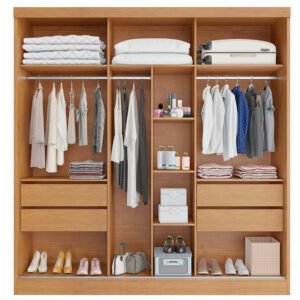 Nicho organizador com 03 prateleiras centrais e espaço para roupas longas